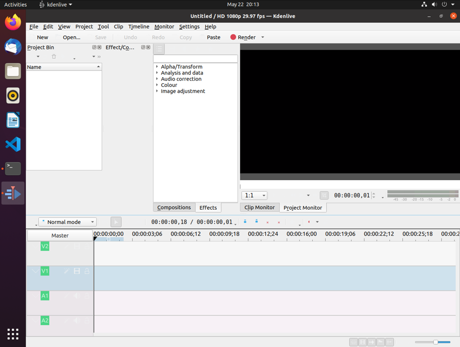 (윈도우 환경에서도 사용 가능하며 설치는 공식홈페이지"https://kdenlive.org/en/download/"에서 가능하다.)