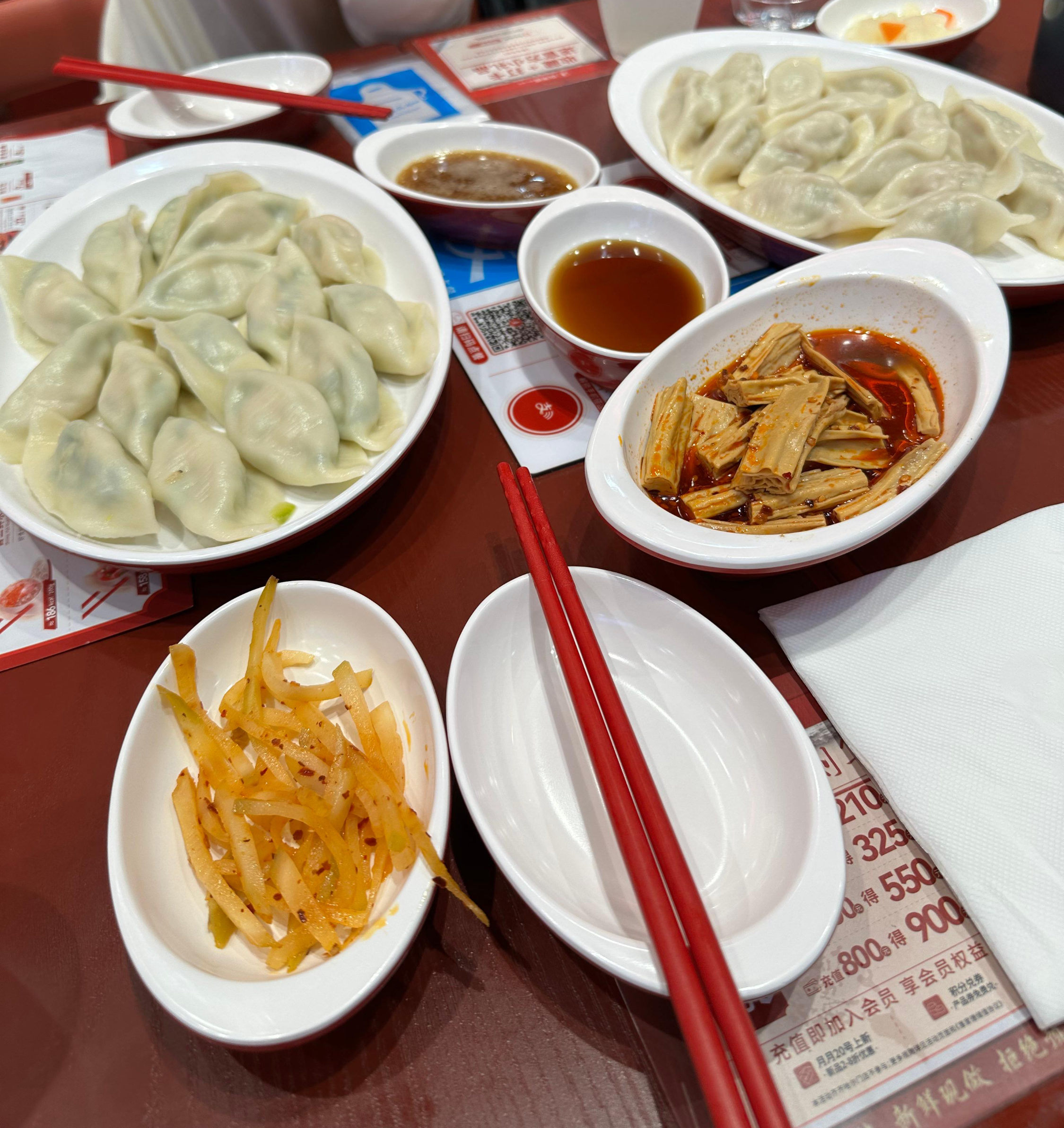 만두가 나오기 전 사진에 있는 푸주에 마라소스가 곁들여진 음식이 먼저 나왔는데 한입 먹는 순간 "아!" 내가 알던 중국음식의 맛이다!라는 생각이 바로 들면서 다시 한번 중국에 왔다는 것을 느꼈다.